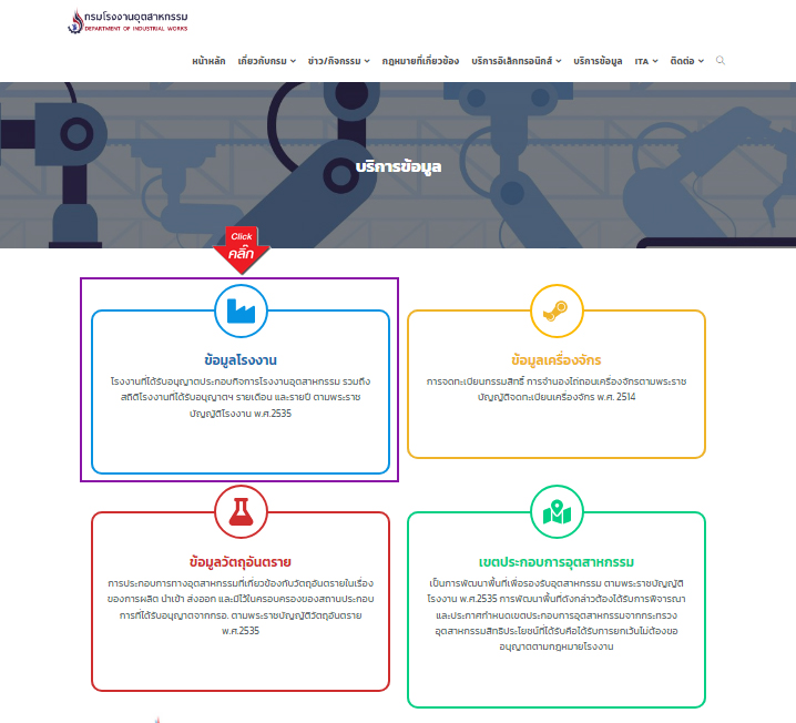 4. เลือกหัวข้อ ค้นหาโรงงานอุตสาหกรรม