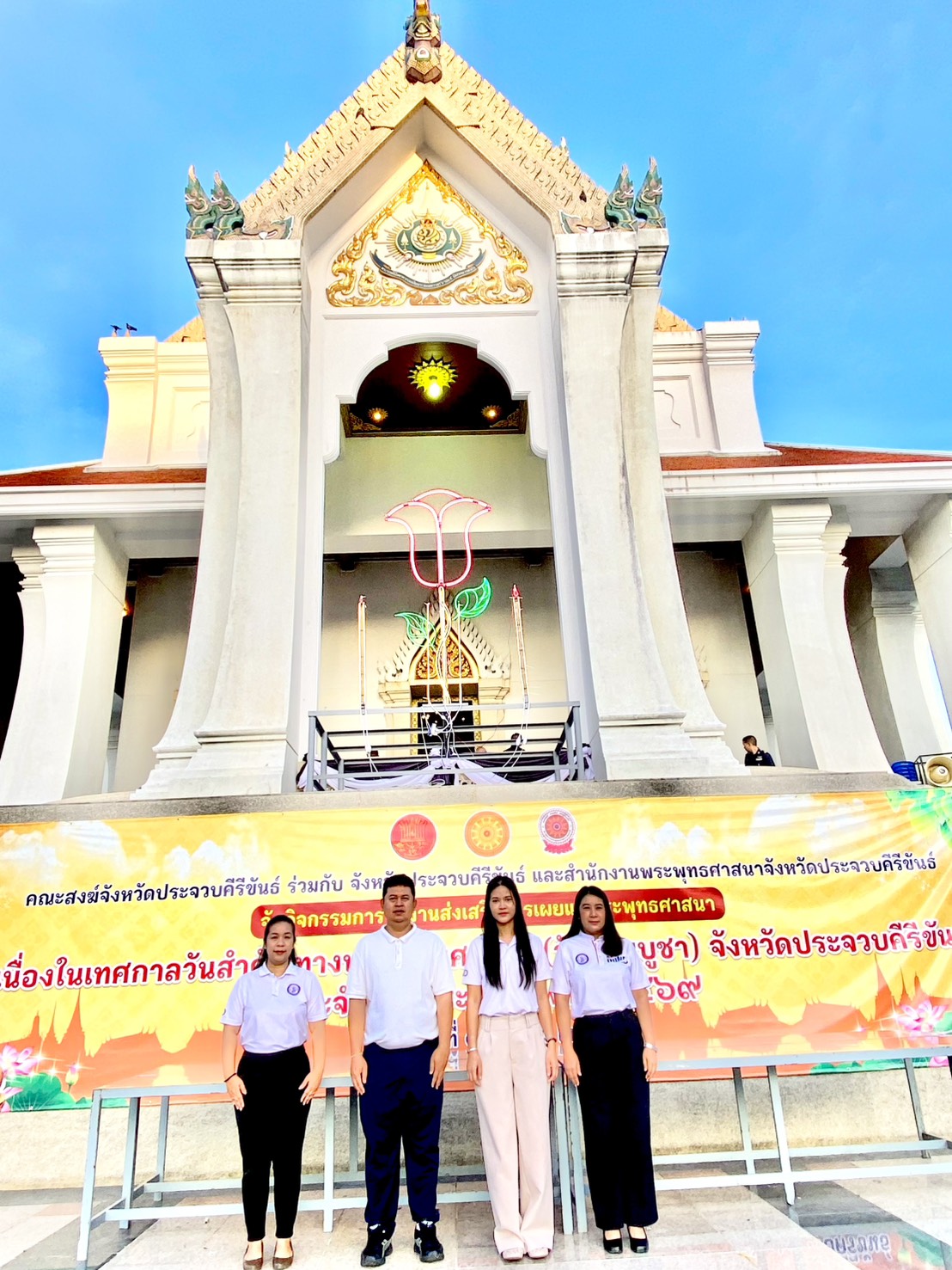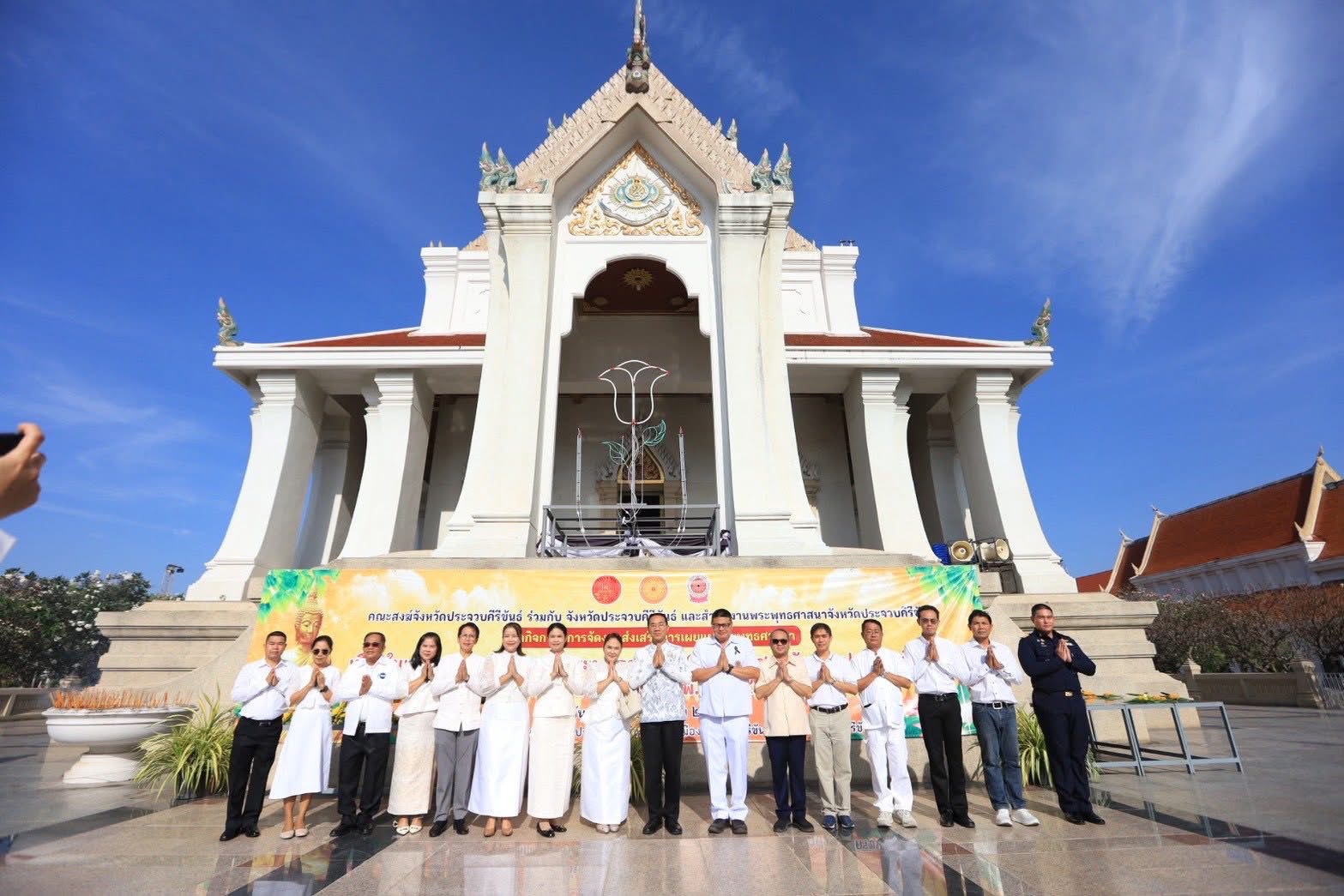 นายเชษฐพร ผึ่งผาย อุตสาหกรรมจังหวัดประจวบคีรีขันธ์ มอบหมายให้นางสาวกมลพร ศรีนวล หัวหน้ากลุ่มอุตสาหกรรมพื้นฐานและการเหมืองแร่ นายพงษ์รัตน์ เขียวภักดี นายช่างรังวัดชำนาญงาน พร้อมด้วยเจ้าหน้าที่สำนักงานอุตสาหกรรมจังหวัดประจวบคีรีขันธ์ เข้าร่วมการจัดงานส่งเสริมการเผยแพร่พระพุทธศาสนา เนื่องในเทศกาลวันสำคัญทางพระพุทธศาสนา (วันมาฆบูชา) จังหวัดประจวบคีรีขันธ์ ประจำปีงบประมาณ พ.ศ.2569 ณ วัดธรรมิการามวรวิหาร อำเภอเมือง จังหวัดประจวบคีรีขันธ์ โดยมี พันจ่าเอก สาคร สิทธิศักดิ์ รองผู้ว่าราชการจังหวัดประจวบคีรีขันธ์ เป็นประธานในพิธี พร้อมด้วย ทหาร ตำรวจ หัวหน้าส่วนราชการ ข้าราชการ หน่วยงาน องค์กรต่างๆ เข้าร่วมกิจกรรมฯ