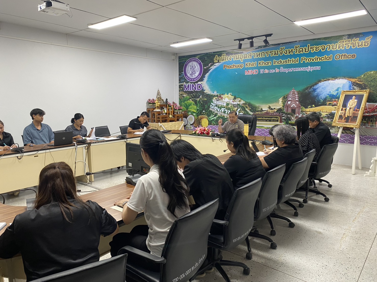 โดยมีข้าราชการ พนักงานราชการและเจ้าหน้าที่ฯ เข้าร่วมประชุม โดยพร้อมเพรียงกัน ณ ห้องประชุมสำนักงานอุตสาหกรรมจังหวัดประจวบคีรีขันธ์