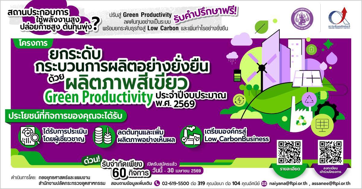 กิจกรรมการยกระดับกระบวนการผลิตอย่างยั่งยืนด้วยผลิตภาพสีเขียว(Green Productivity)