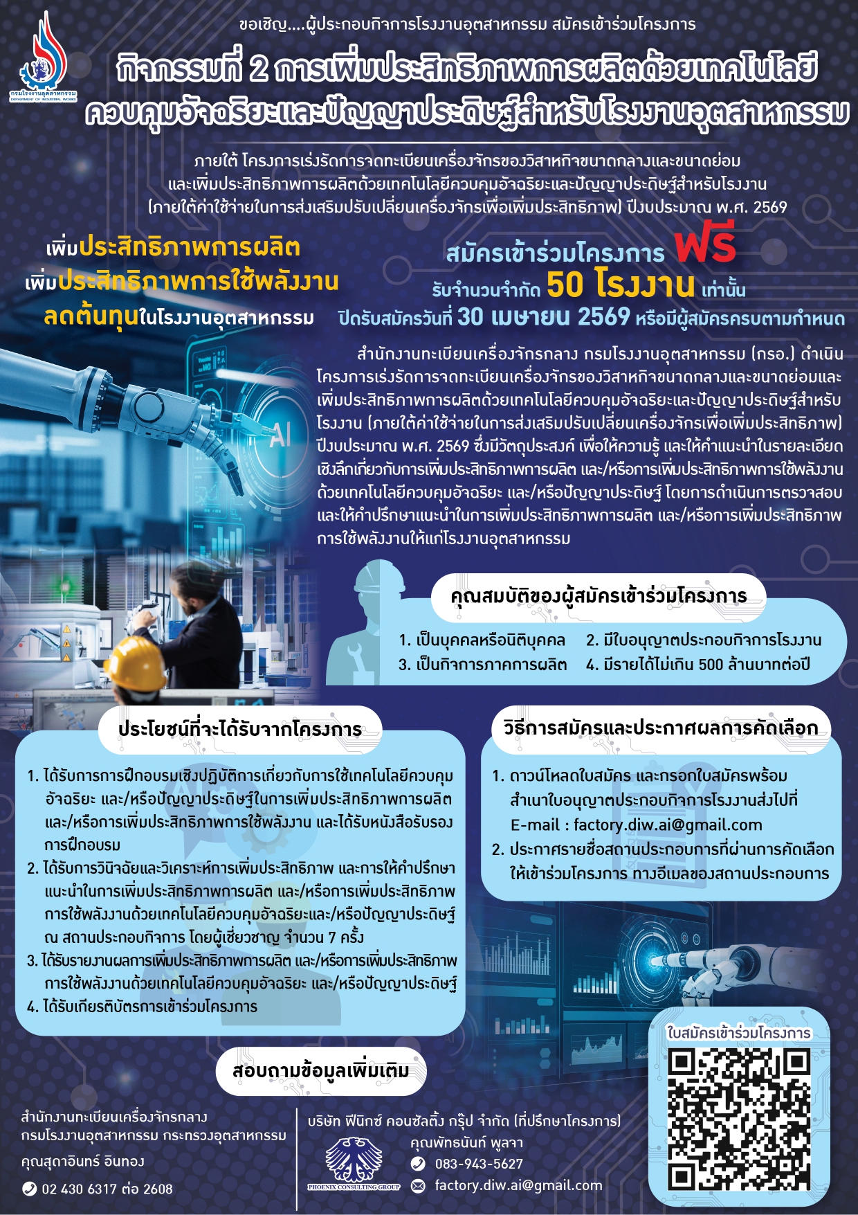 ประชาสัมพันธ์การสมัครเข้าร่วมโครงการเร่งรัดการจดทะเบียนเครื่องจักรของวิสาหกิจขนาดกลางและขนาดย่อม ปีงบประมาณ พ.ศ.2569